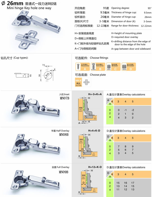 mini hinge key hole one way