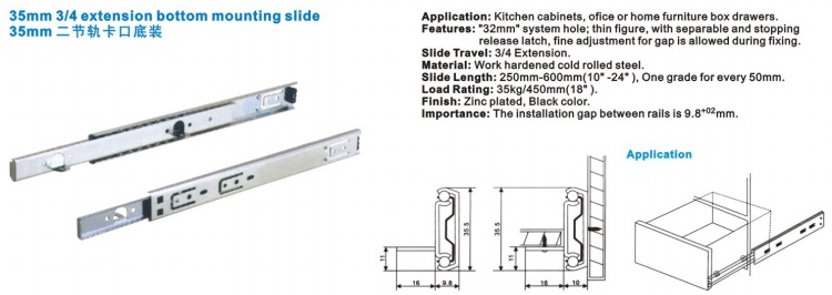 35mm 3/4 extension bottom mounting slide